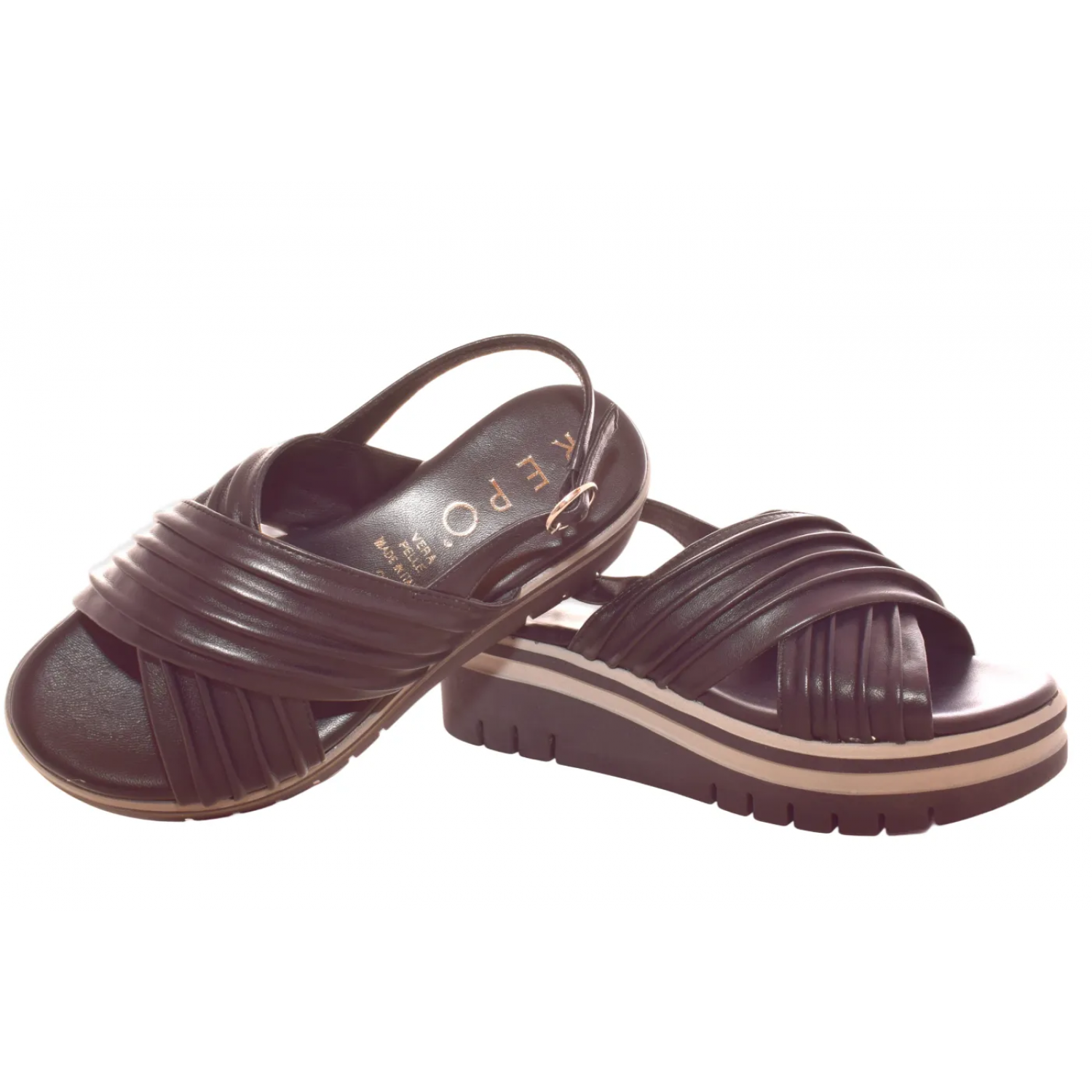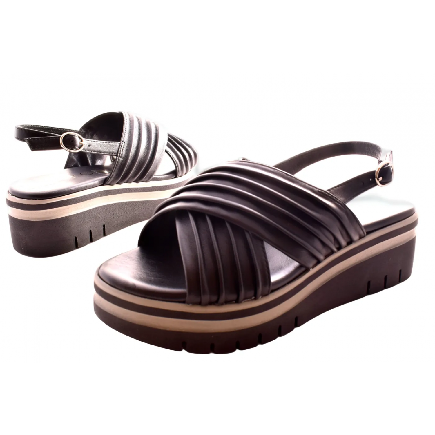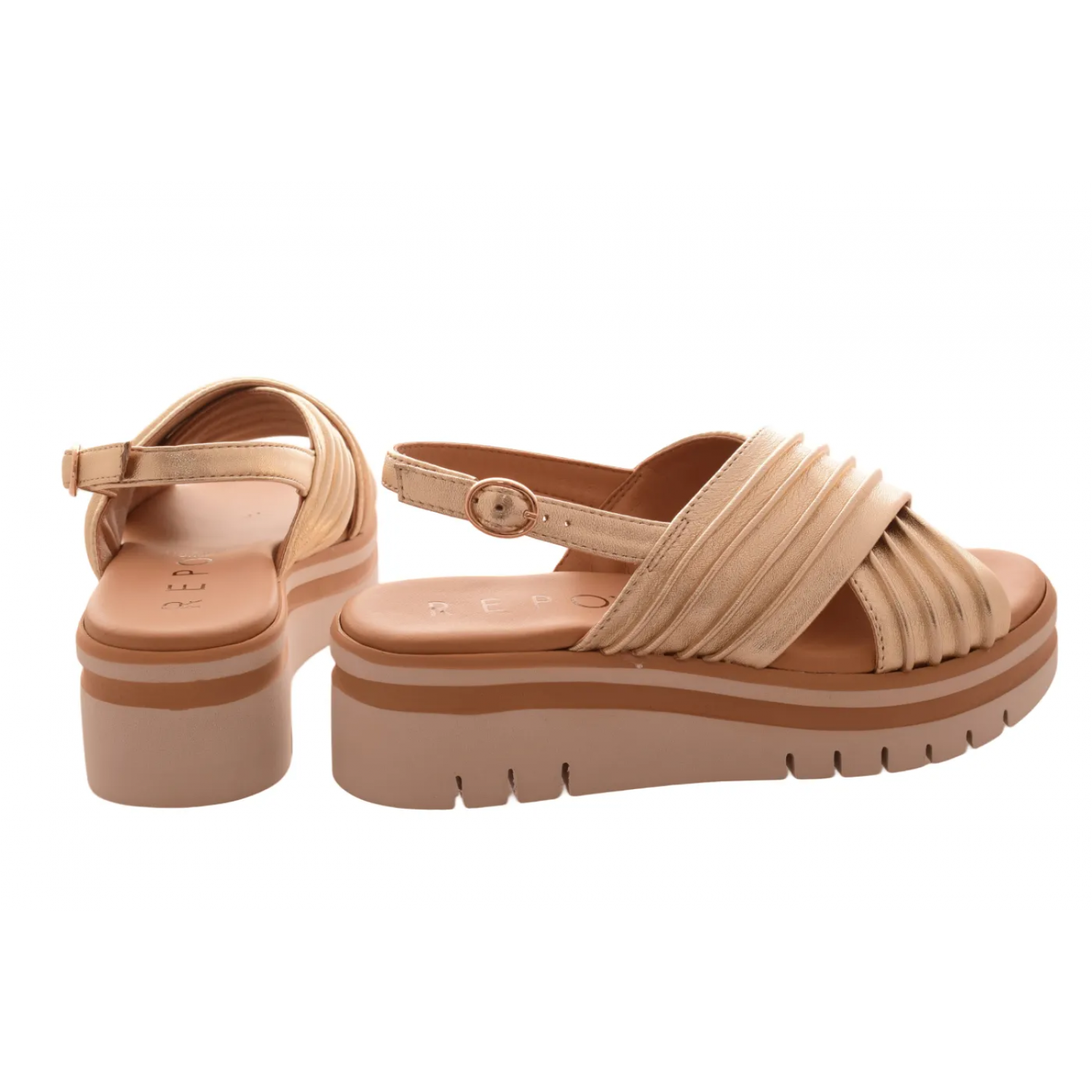 Γυναικεία Δερμάτινα Πέδιλα 5,5 εκ με χιαστί φάσες και Ανατομικό Πάτο by REPO | 54246-Ε6