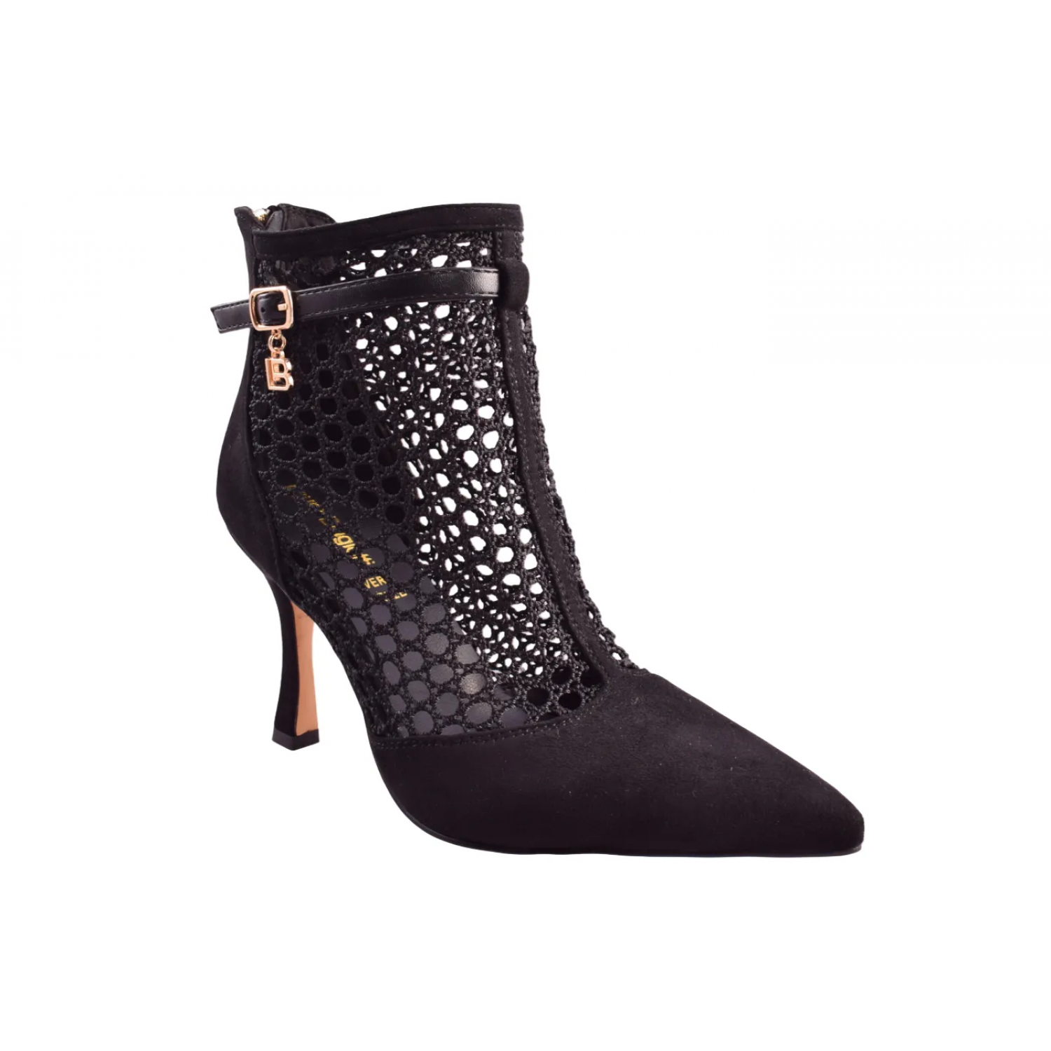 Το λεπτό τακούνι τύπου στιλέτο, ύψους 9 cm, χαρίζει κομψή σιλουέτα και αναδεικνύει το πόδι, ενώ το διάτρητο υφασμάτινο επάνω μέρος προσφέρει μοντέρνα αισθητική και ελαφριά αίσθηση.