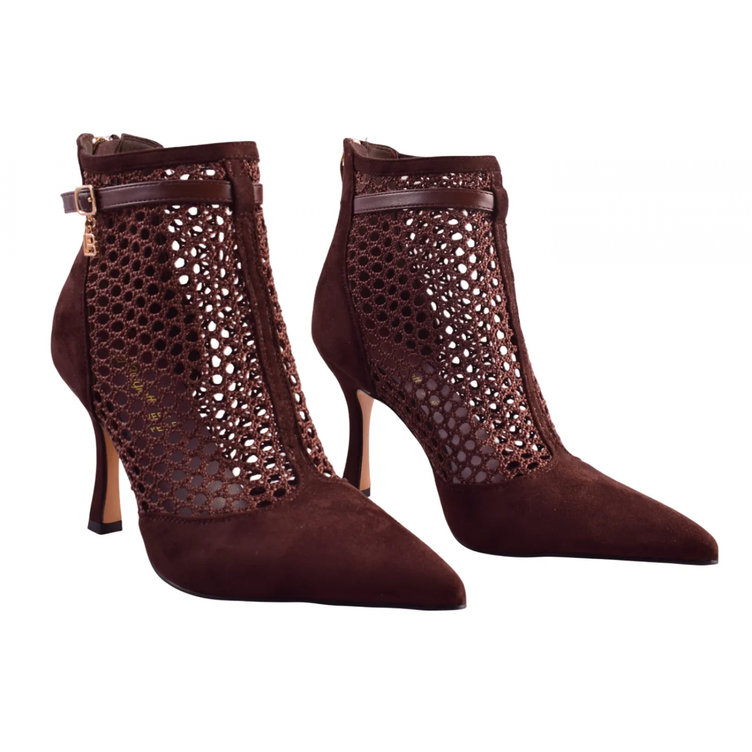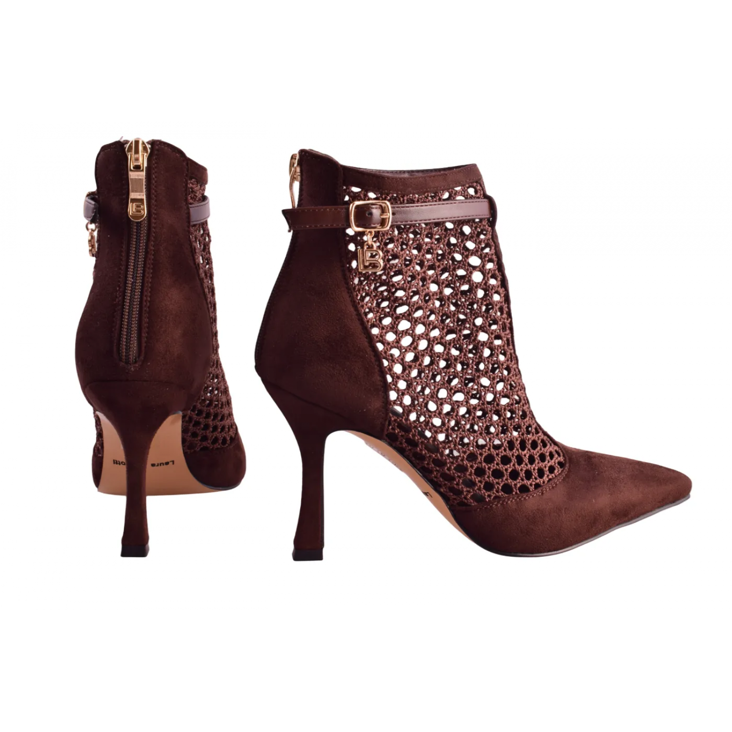Γυναικεία Μποτάκια Laura Biagiotti Μαύρα και Καφέ με Τακούνι Στιλέτο 9cm LB-9687