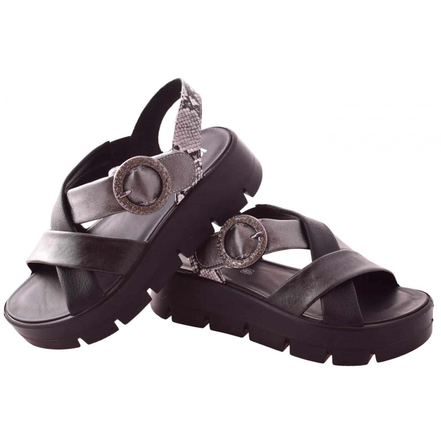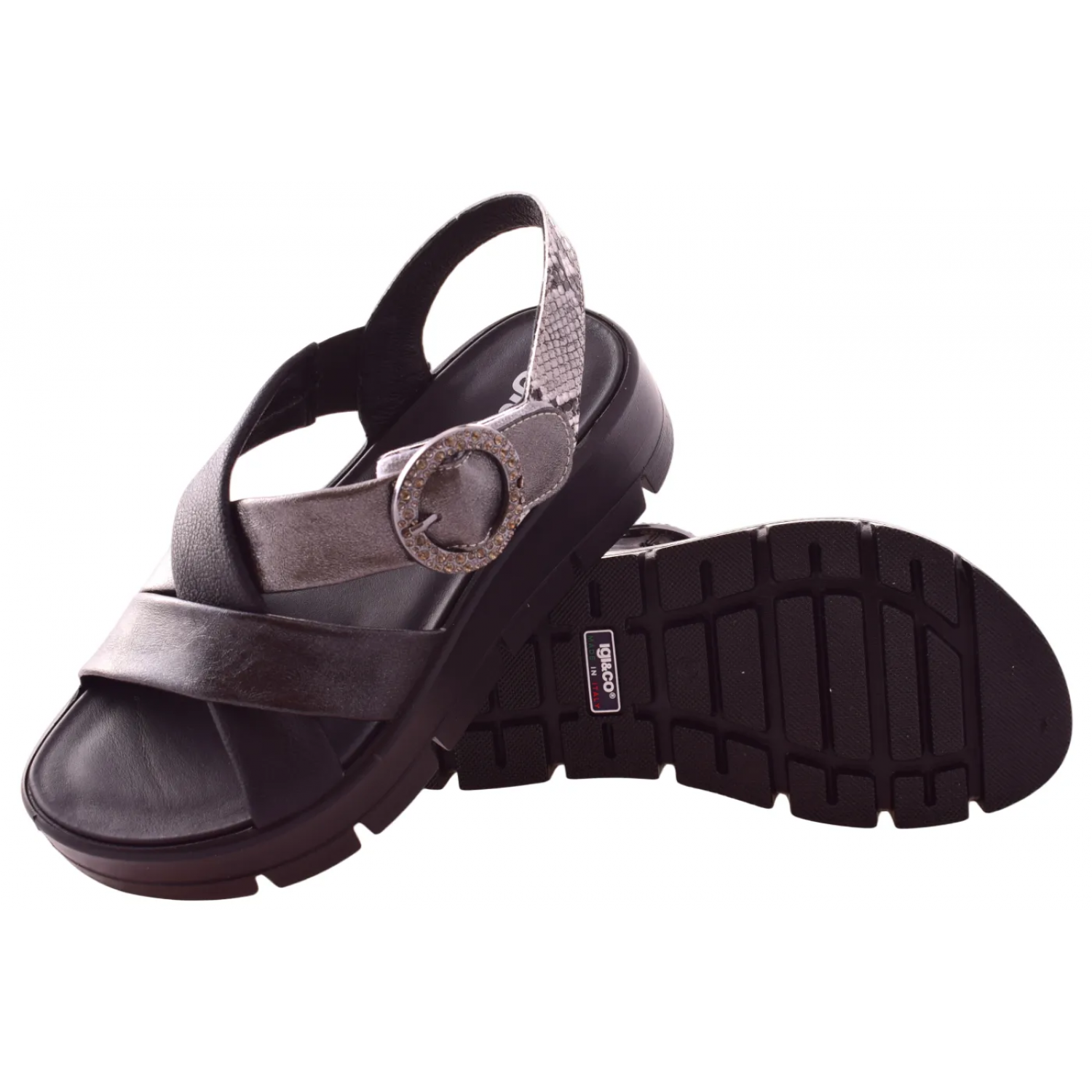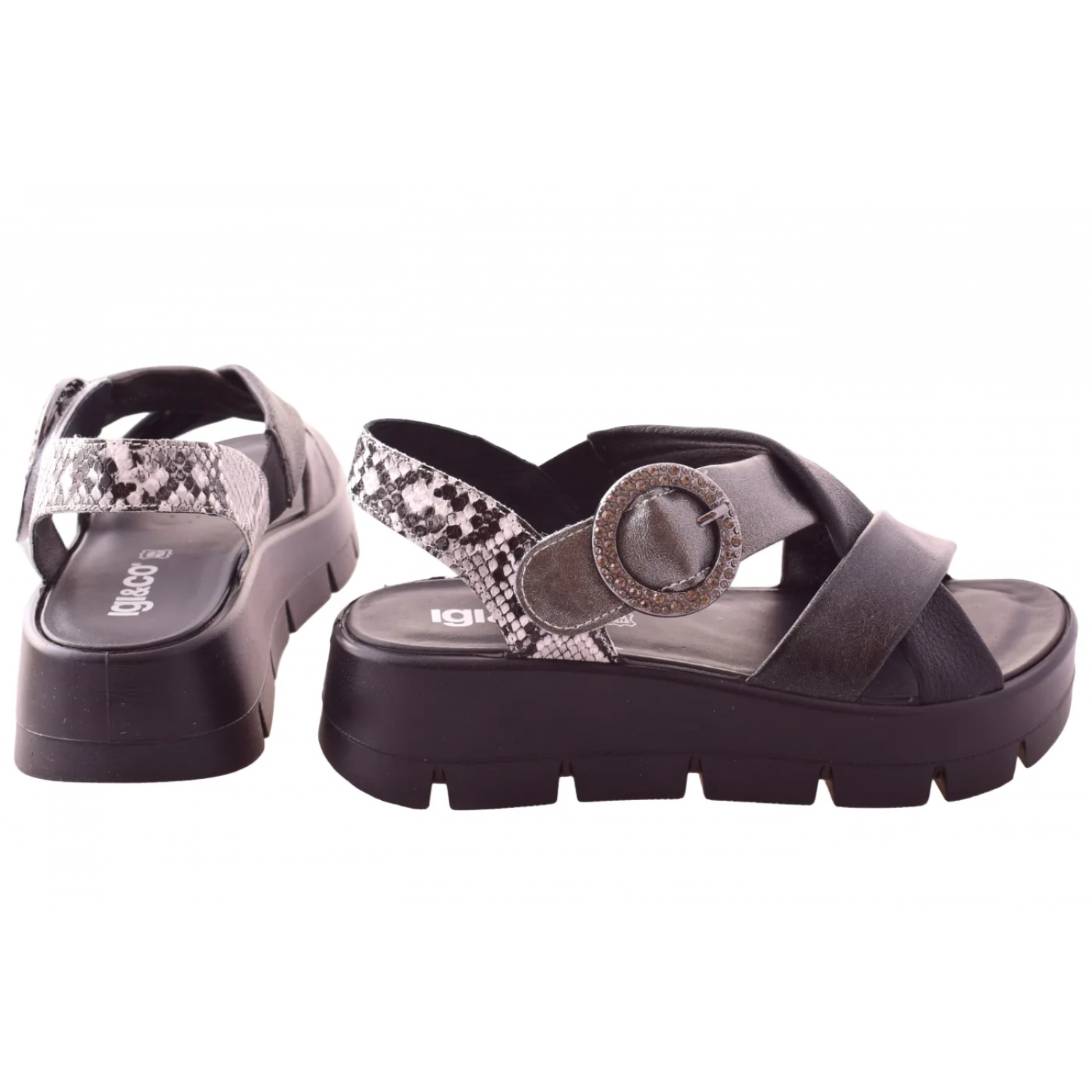 Γυναικεία σανδάλια με πλατφόρμα, μαύρο και γκρι με velcro 4cm by IGI & CO | 1160033