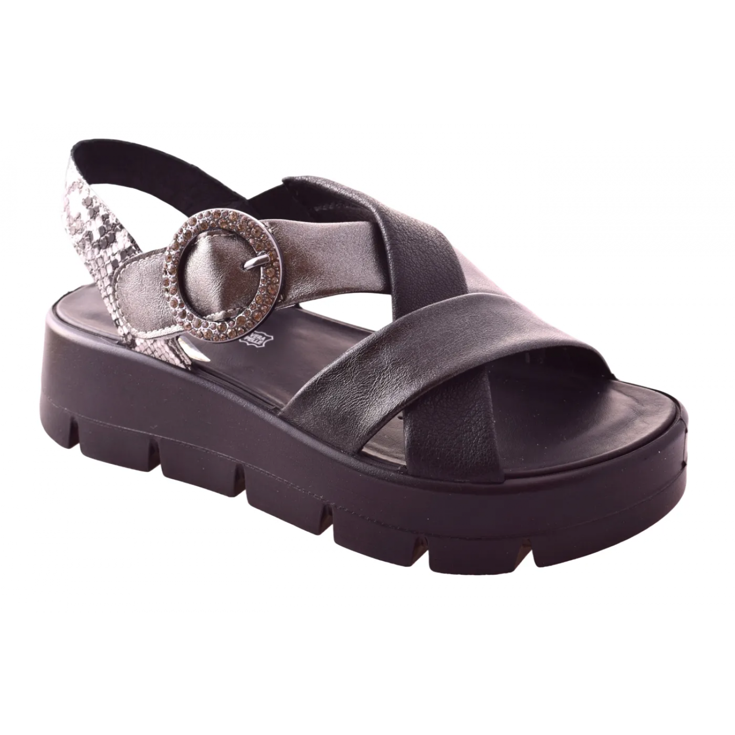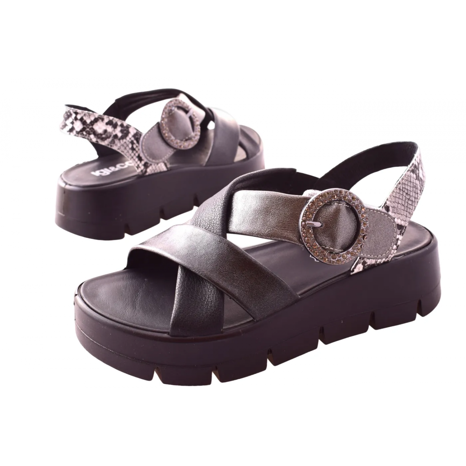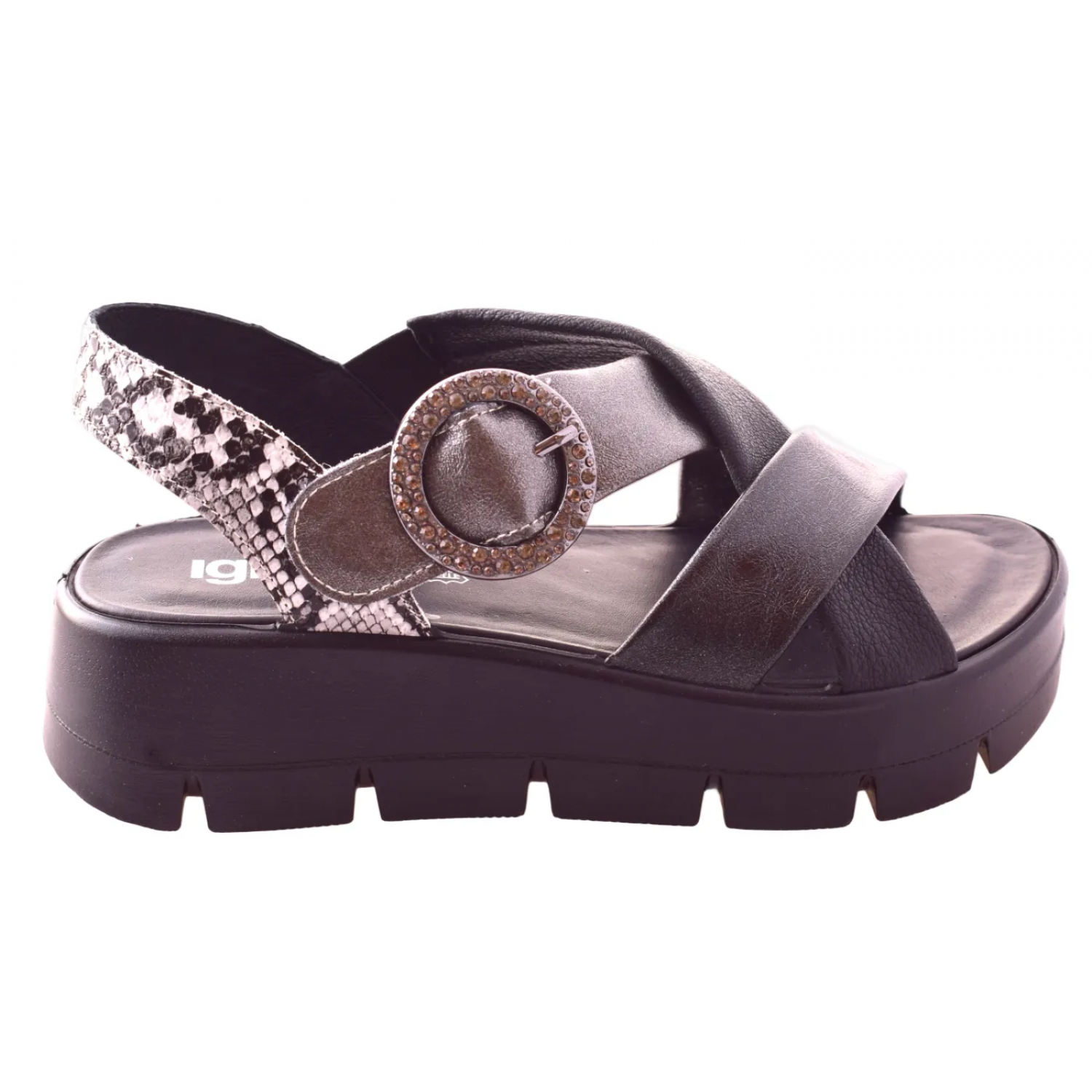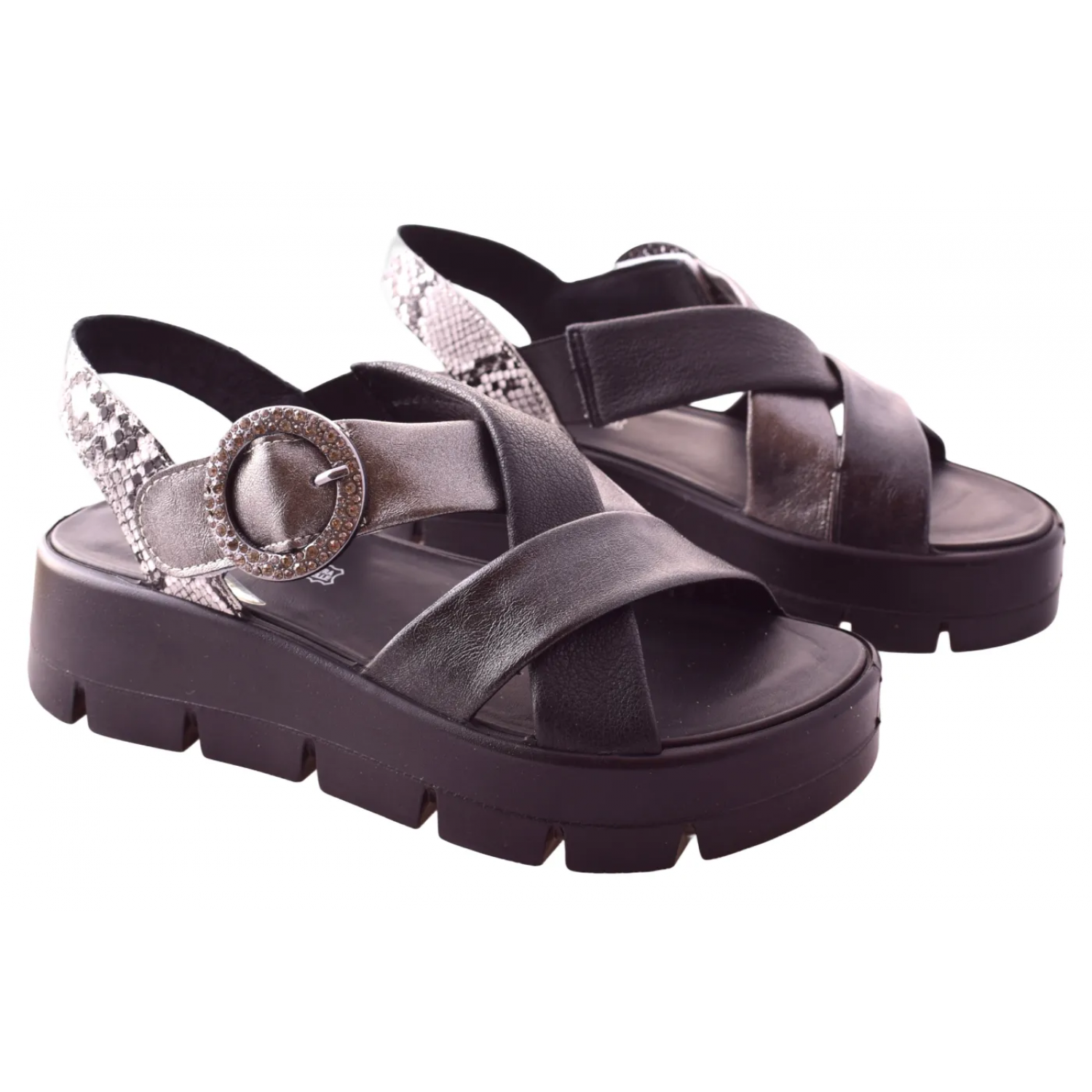 Γυναικεία σανδάλια με πλατφόρμα, μαύρο και γκρι με velcro 4cm by IGI & CO | 1160033