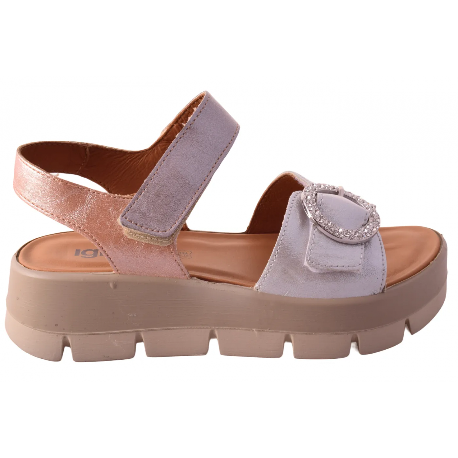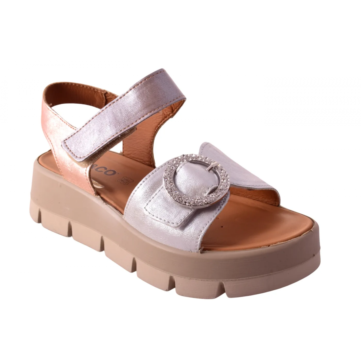 Γυναικεία σανδάλια με πλατιά πλατφόρμα 4 cm σε ασημί και μπρονζε χρώμα με βέλκρο by IGI & CO | 1160311