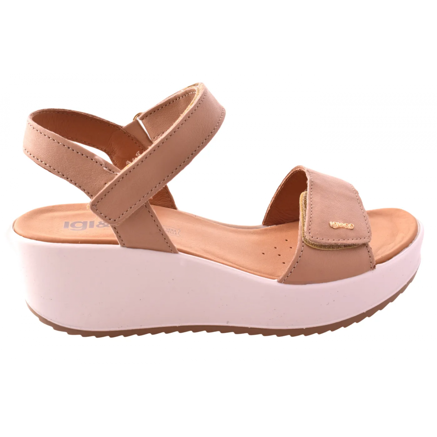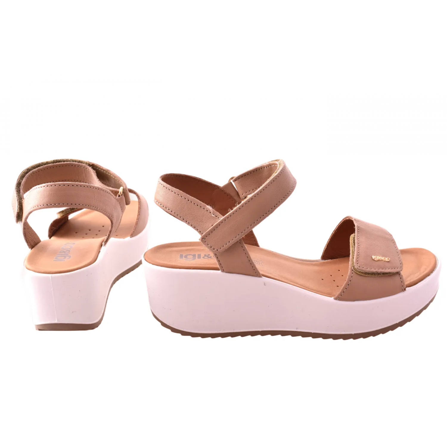 Γυναικεία σανδάλια με πλατιά πλατφόρμα 4 cm σε ταμπά χρώμα με βέλκρο by IGI & CO | 1161611