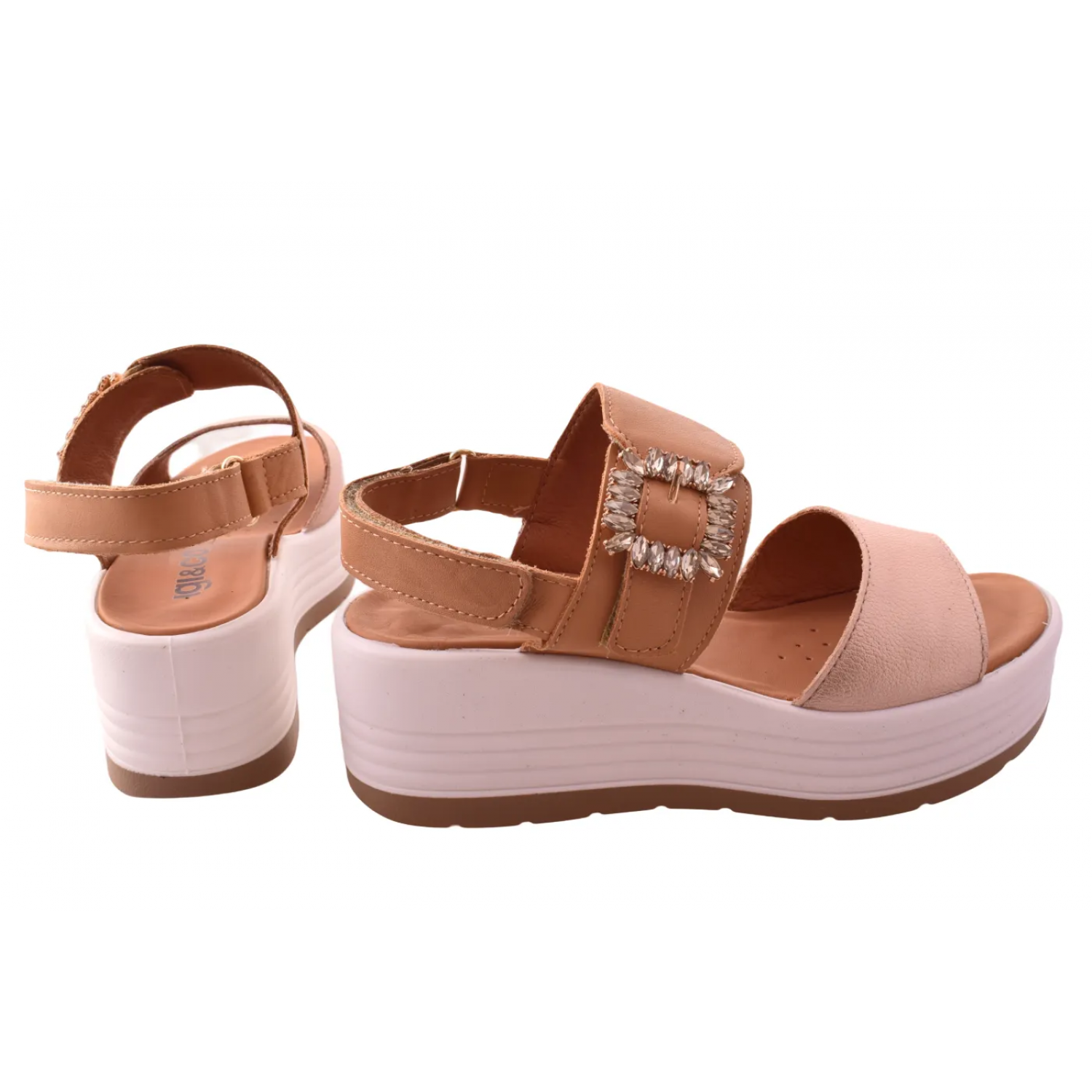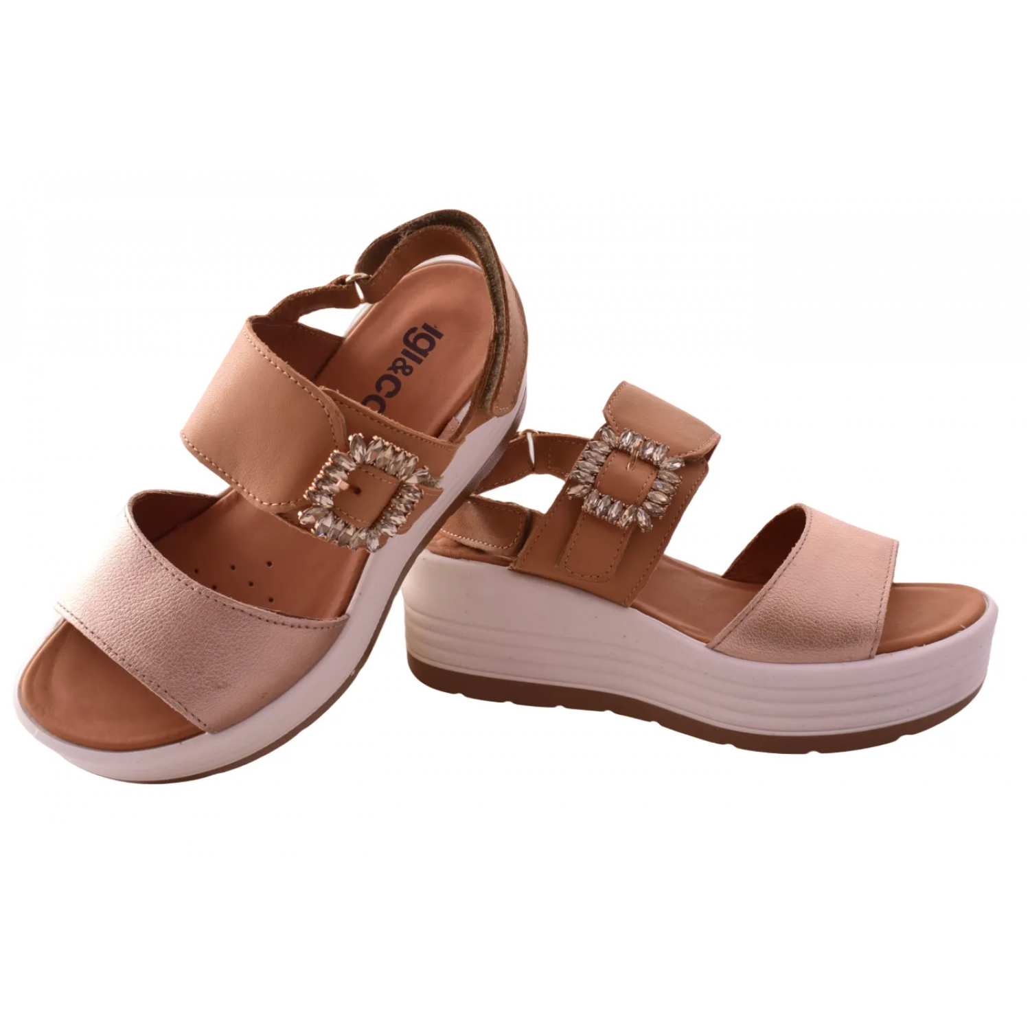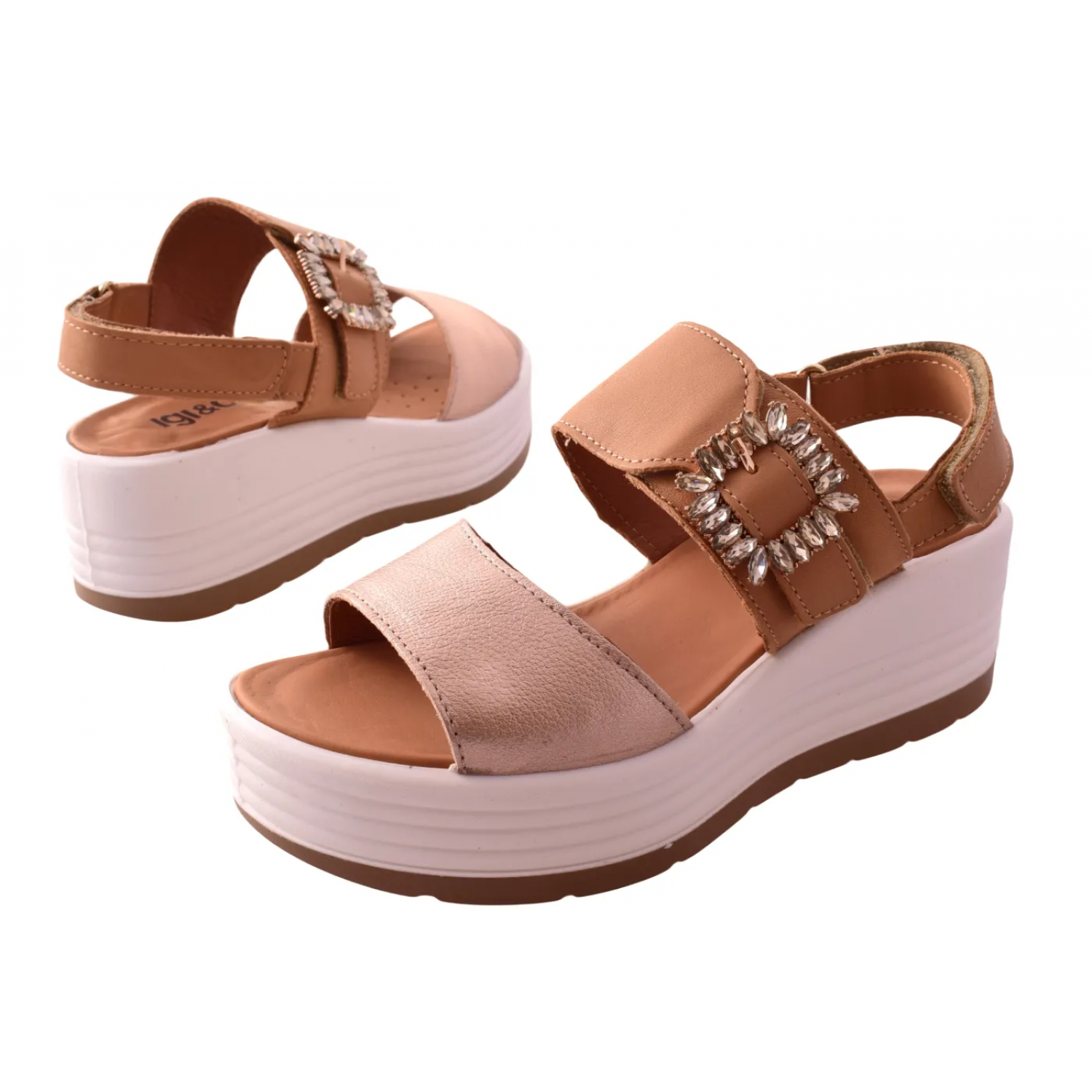 Γυναικεία σανδάλια με πλατιά πλατφόρμα σε μπεζ χρώμα με βέλκρο by IGI & CO | 1164511