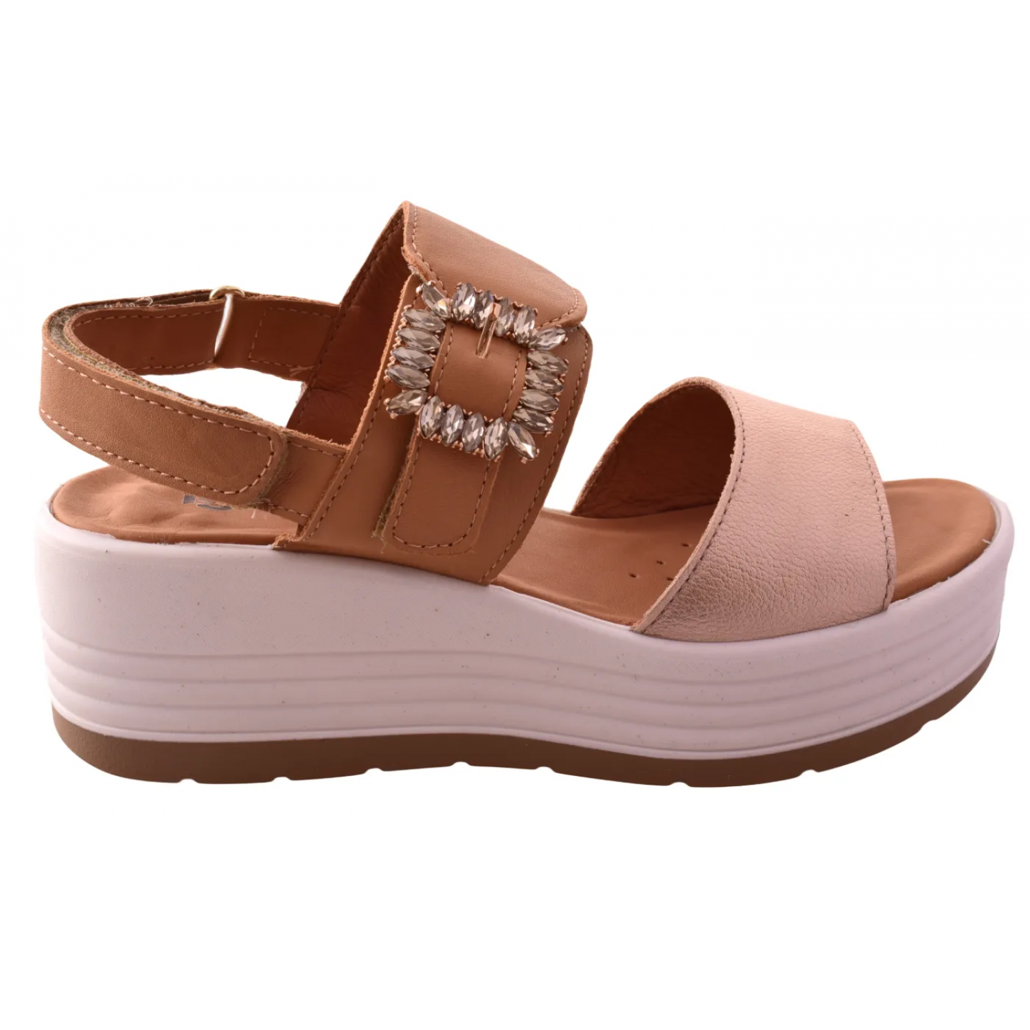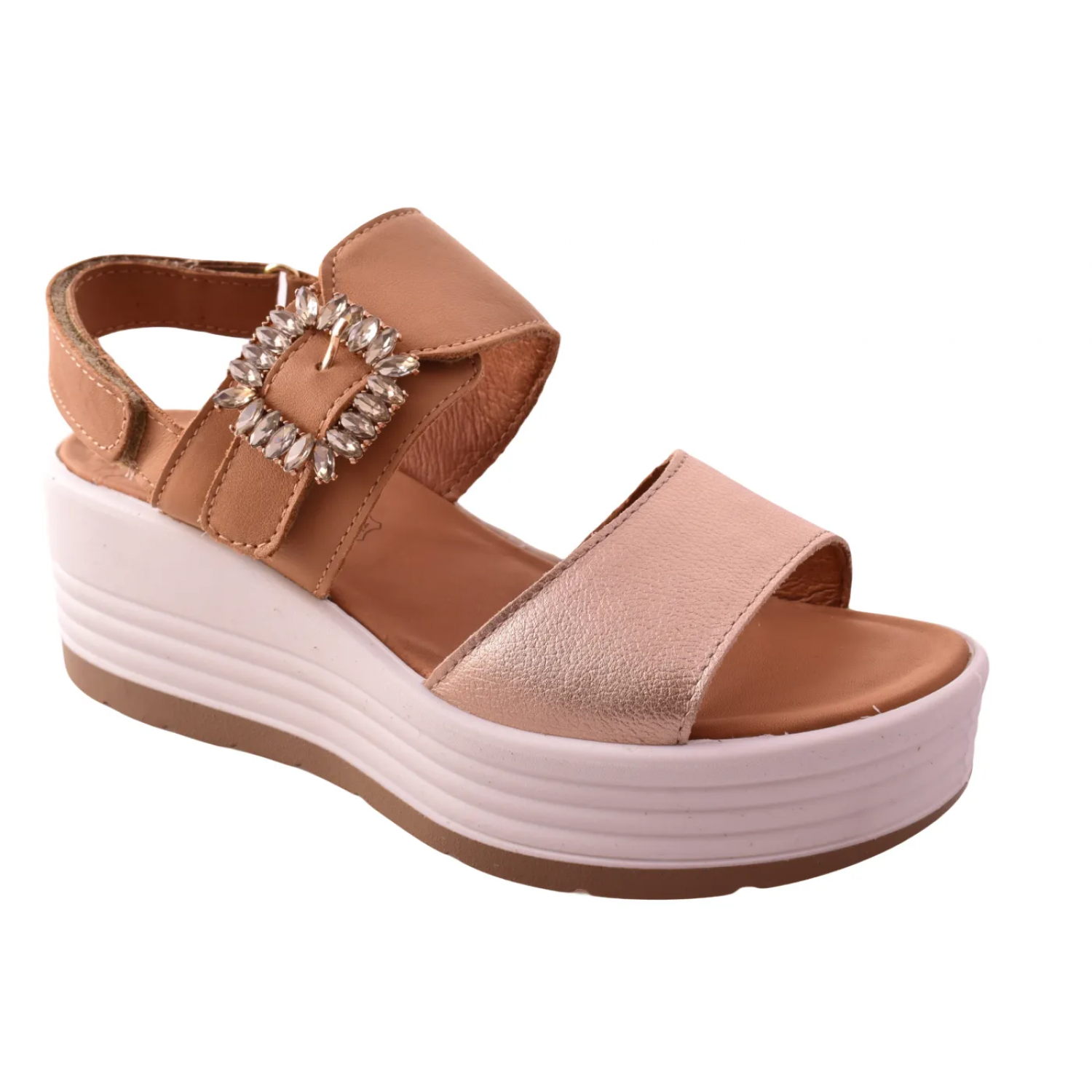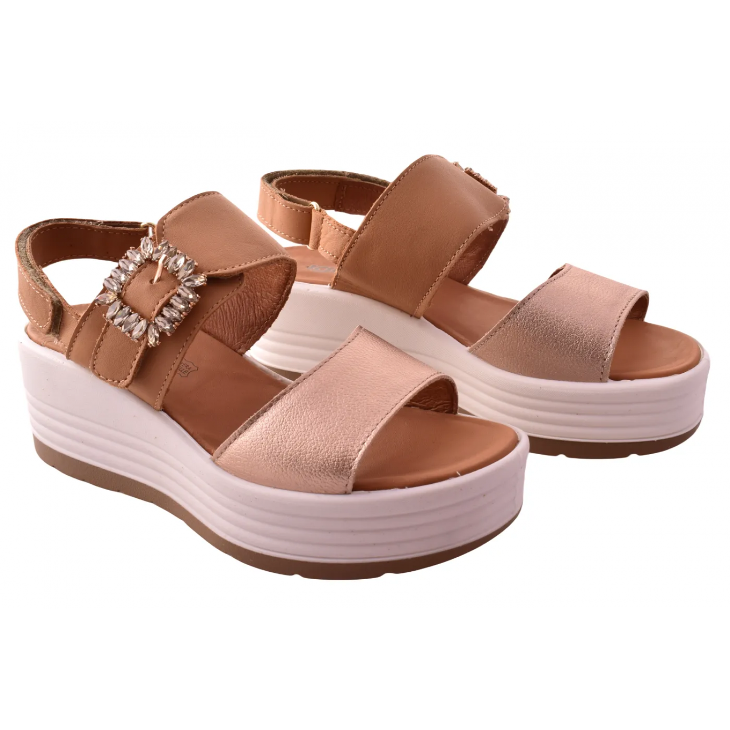 Γυναικεία σανδάλια με πλατιά πλατφόρμα σε μπεζ χρώμα με βέλκρο by IGI & CO | 1164511