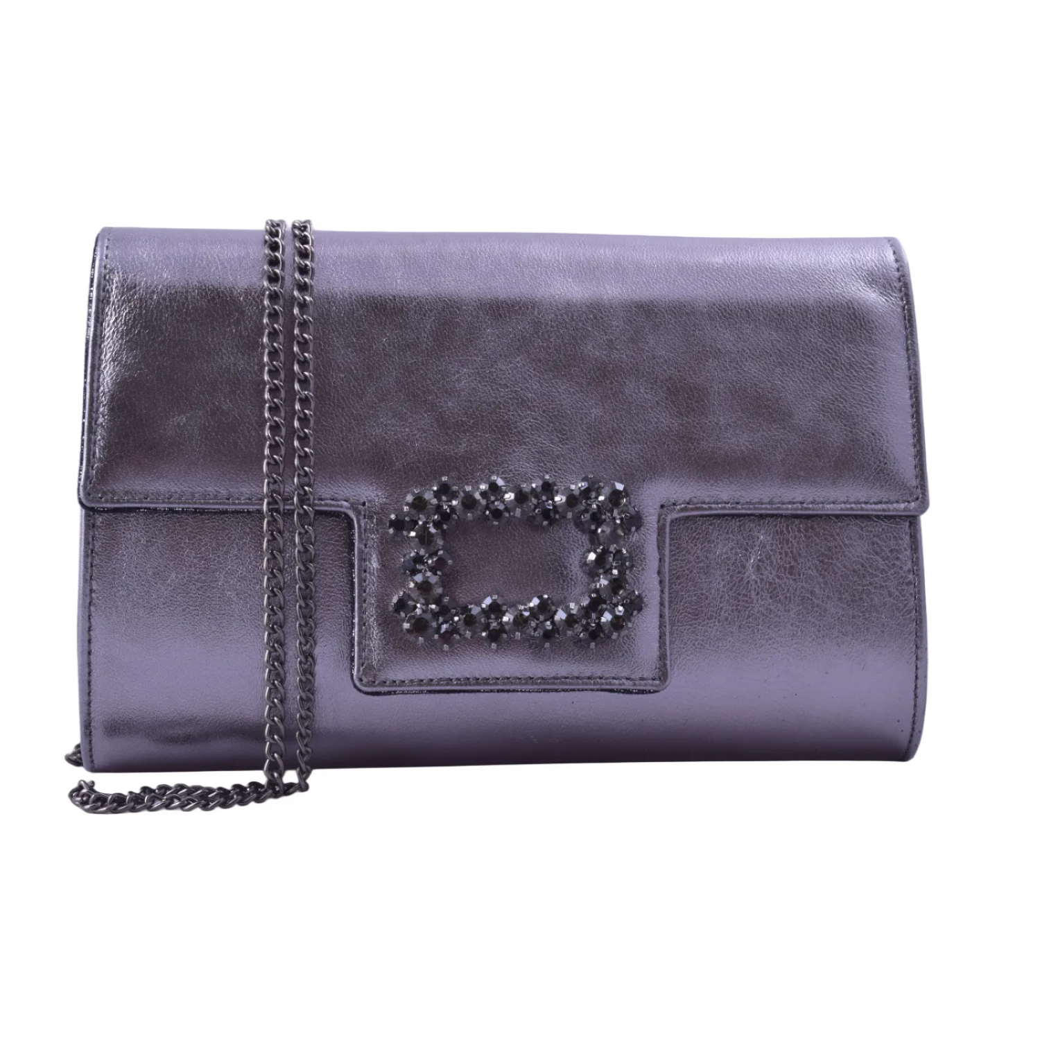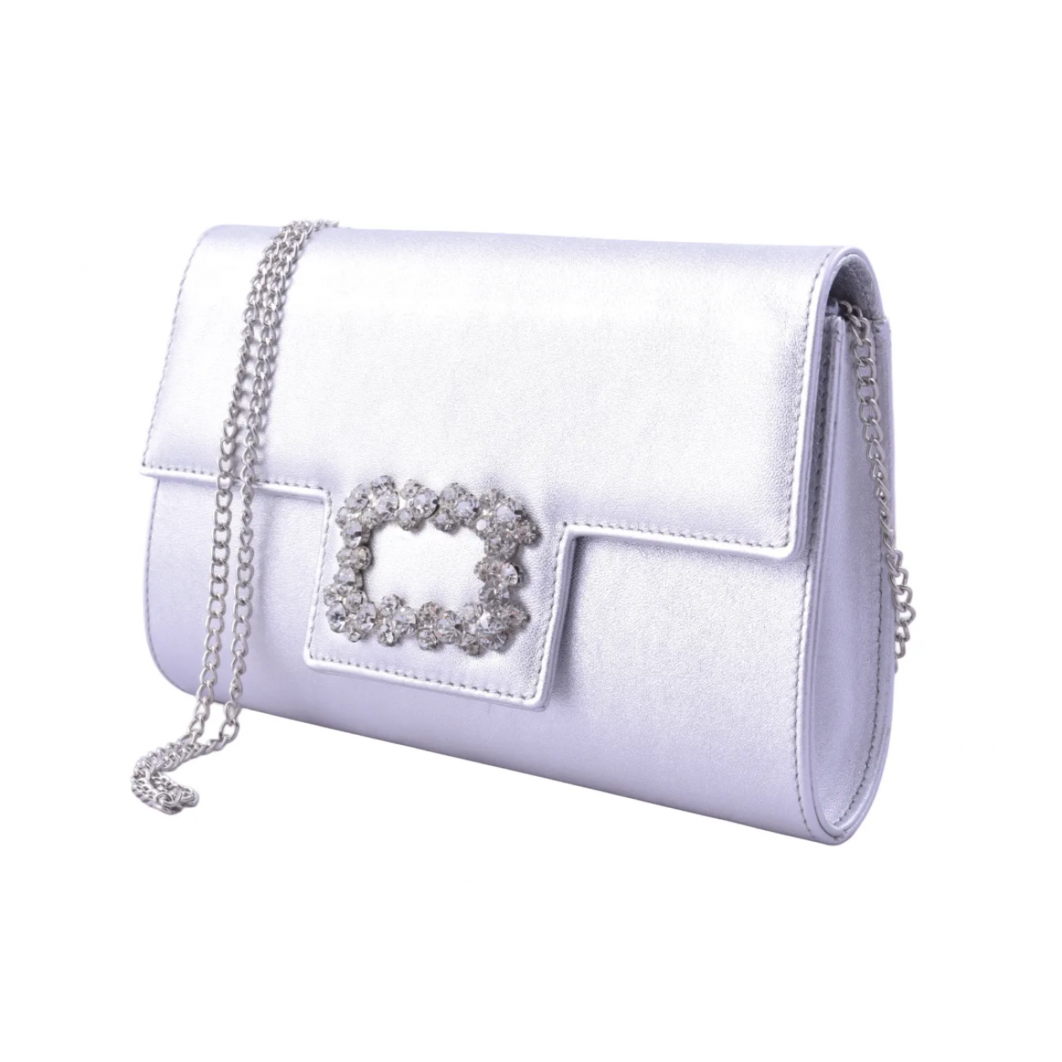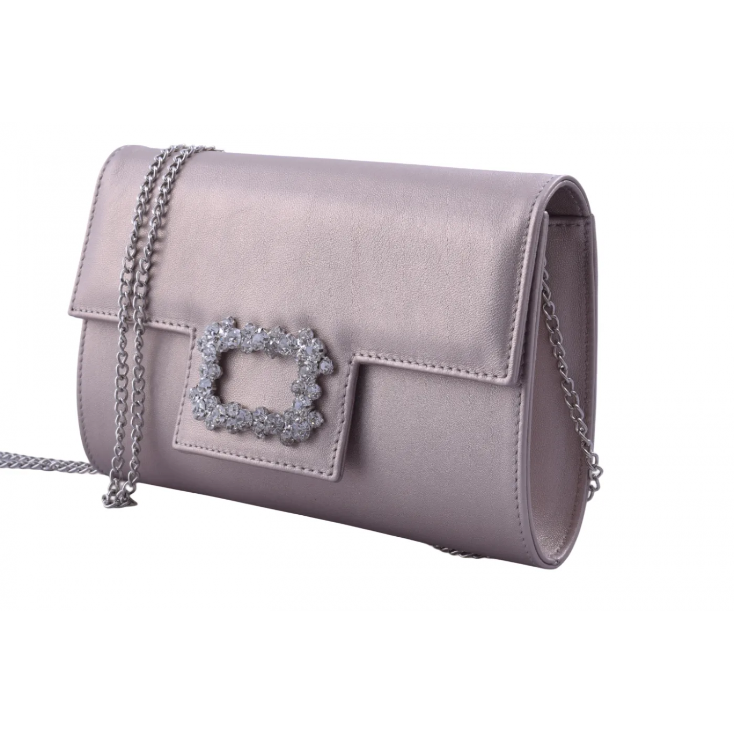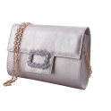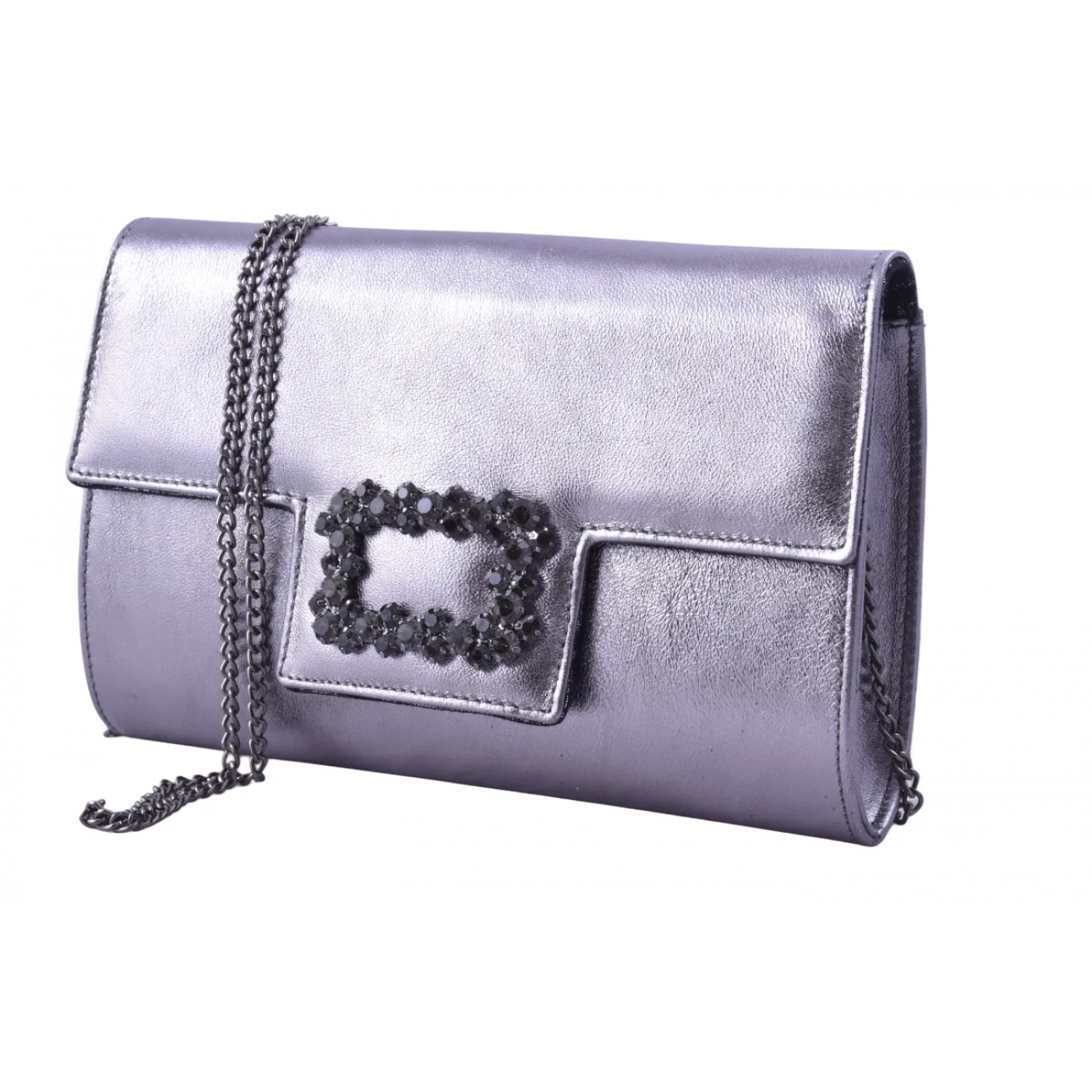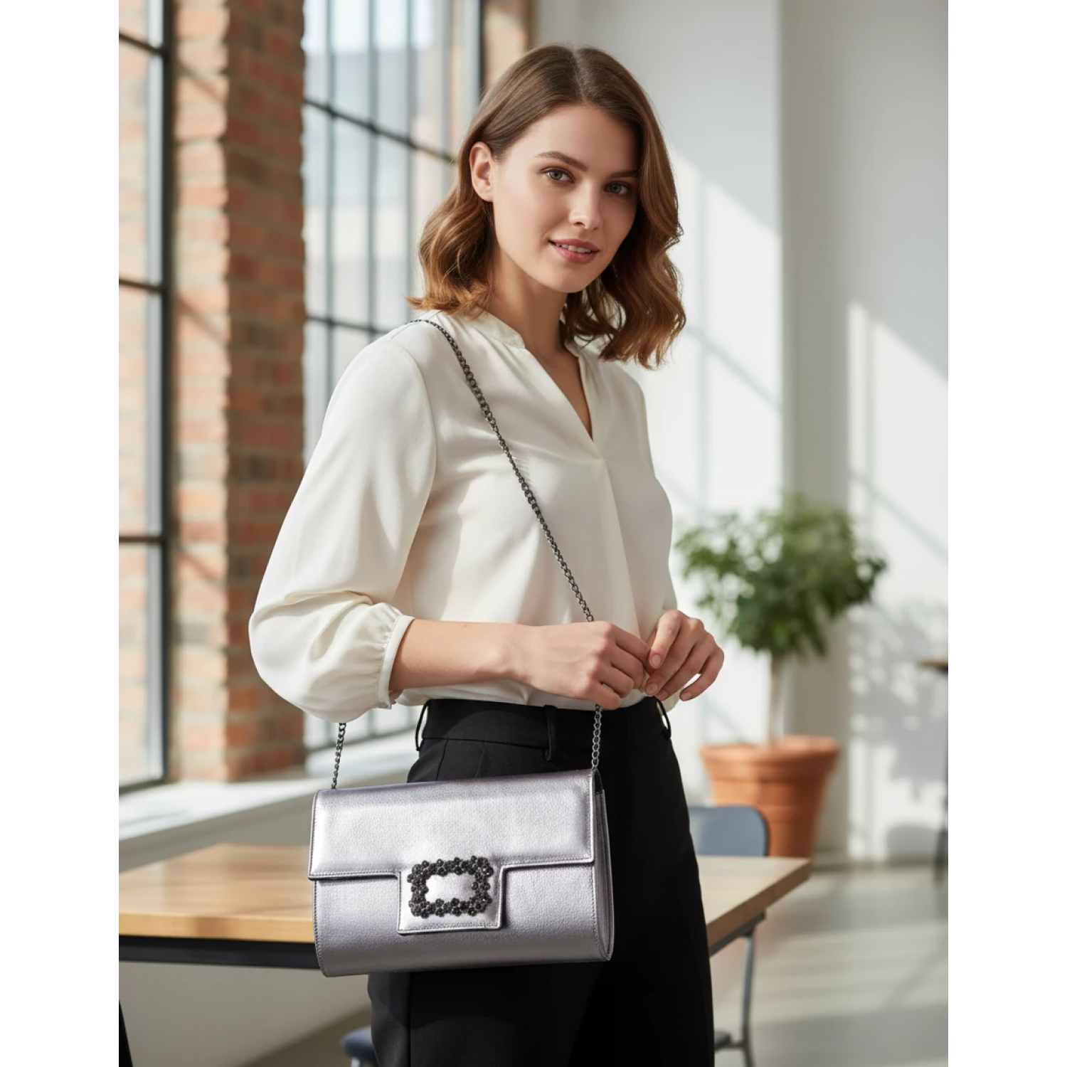 Χειροποίητη Αμπιγιέ Δερμάτινη Τσάντα Φάκελος με Κρυστάλλινη Αγκράφα Σχ - 3604-SL